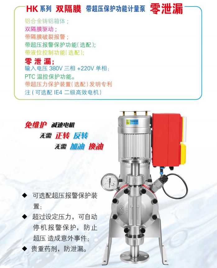 雙隔膜驅(qū)動(dòng),帶隔膜破裂報(bào)警。