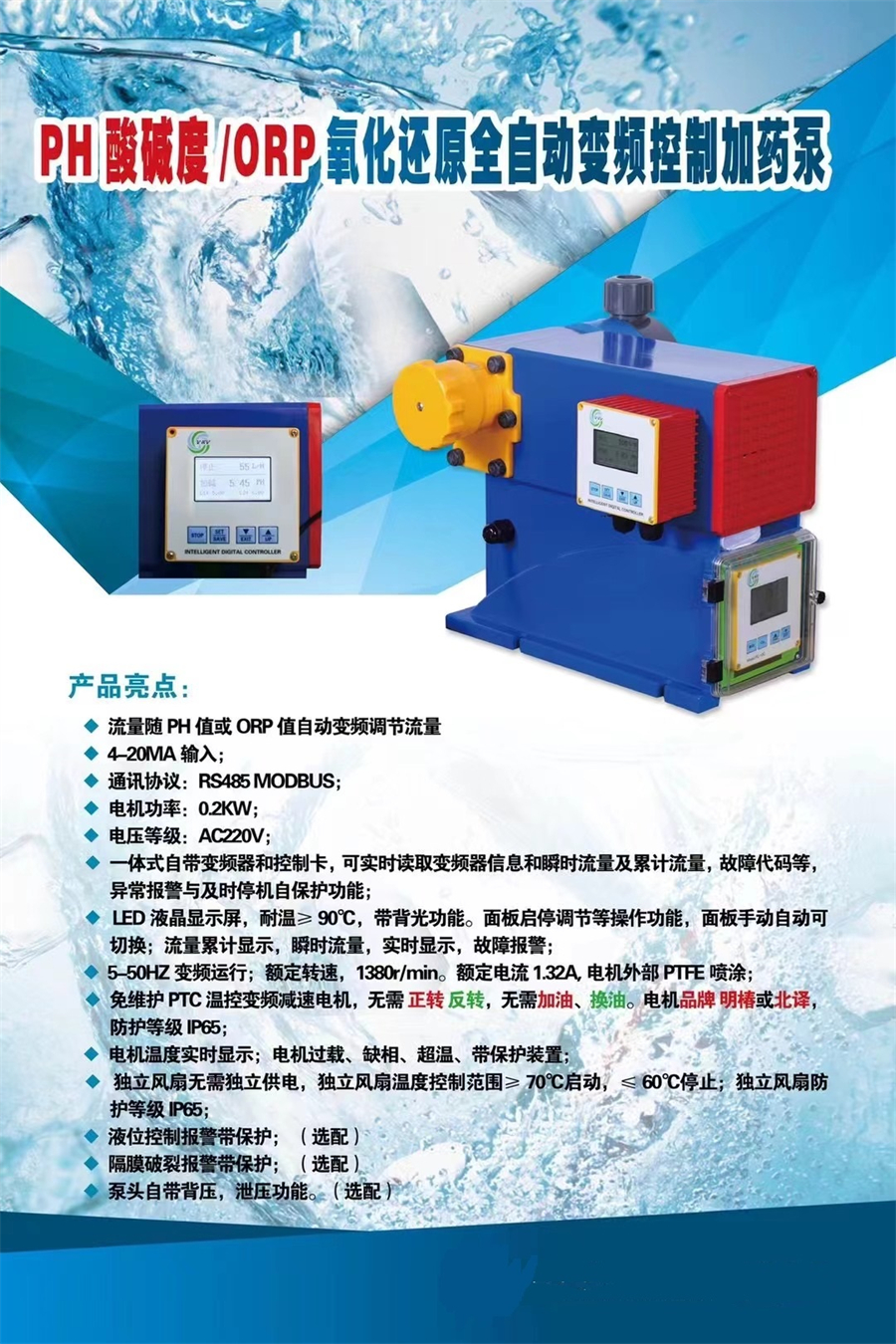 PH酸堿度/ORP氧化還原全自動變頻控制加藥泵