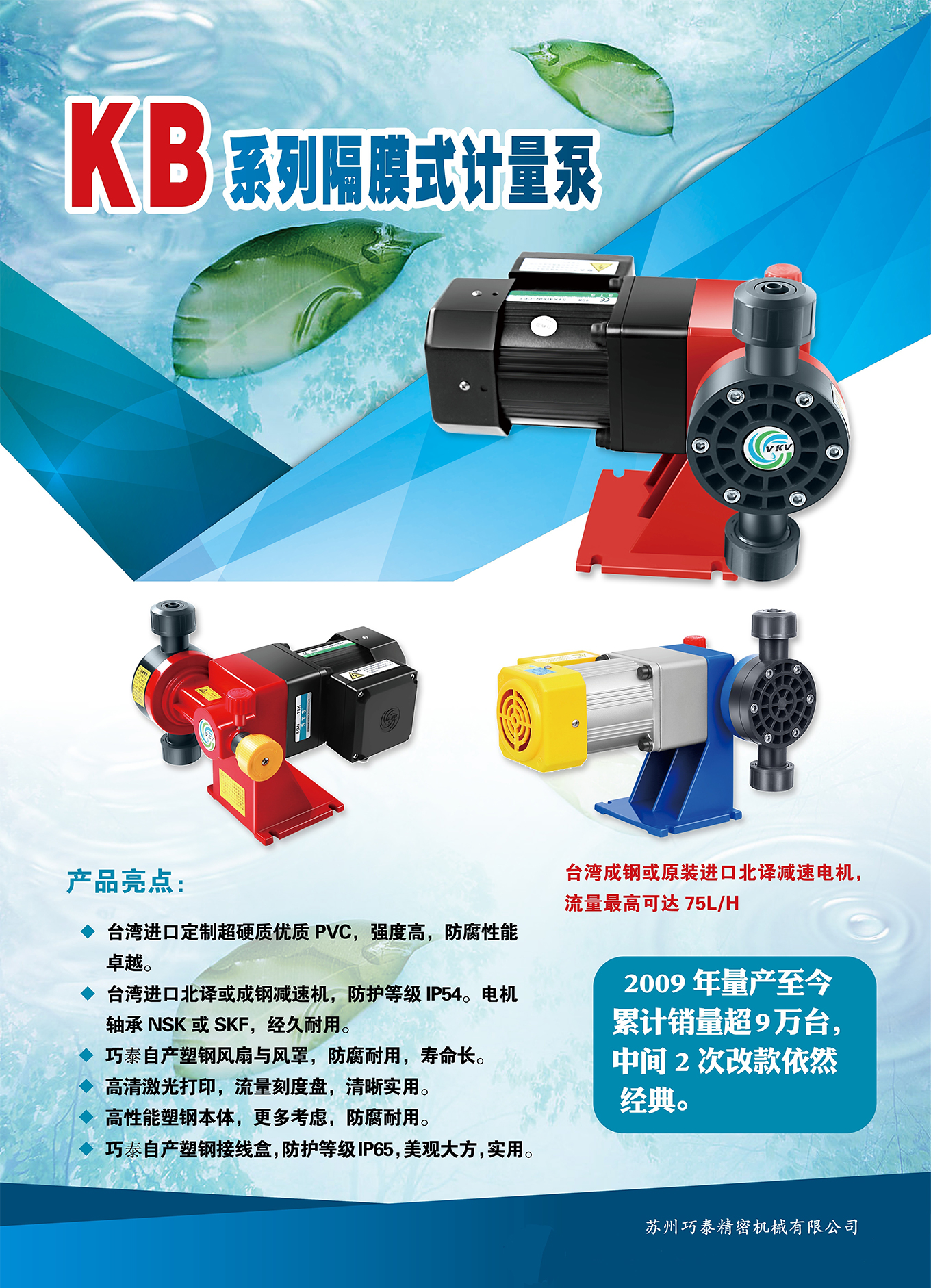 驅(qū)動(dòng)方式:電機(jī)驅(qū)動(dòng),流量可達(dá)75L/H